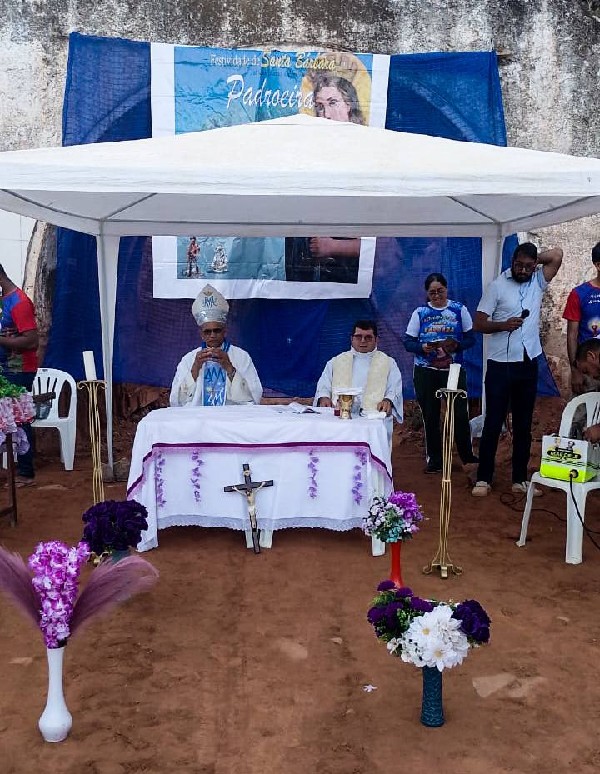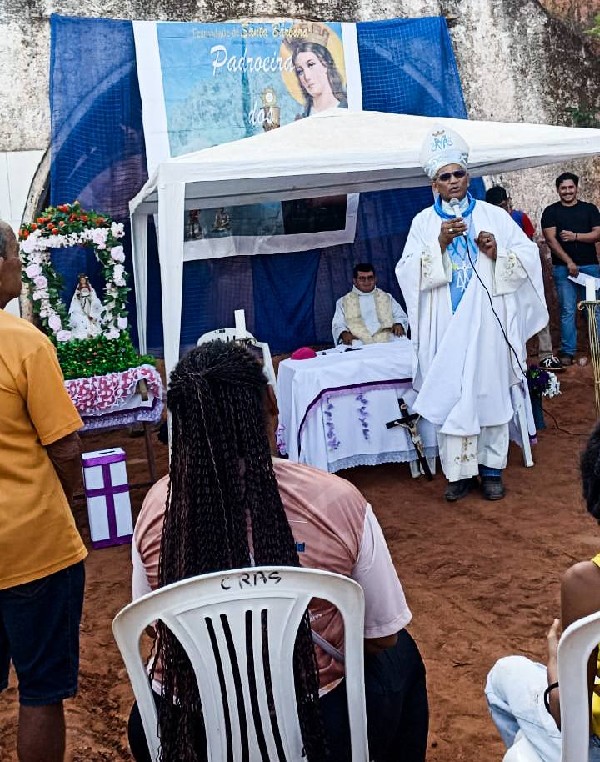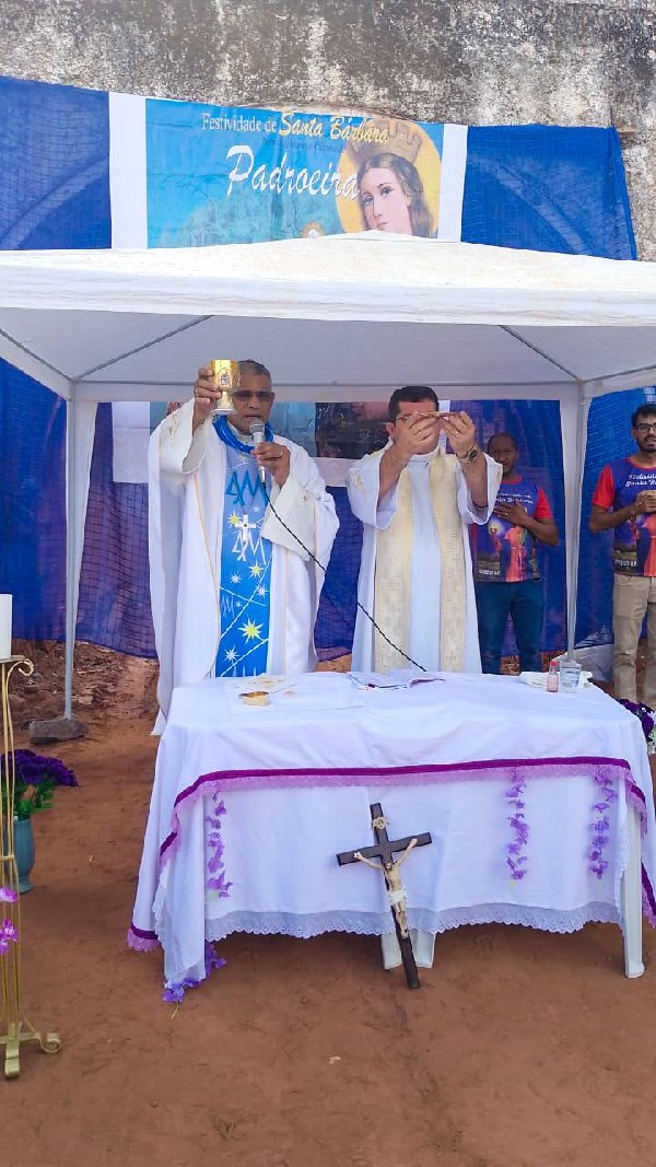 Fiéis participam da missa e procissão em honra a Santa Bárbara, fortalecendo a tradição religiosa em Calçoene.